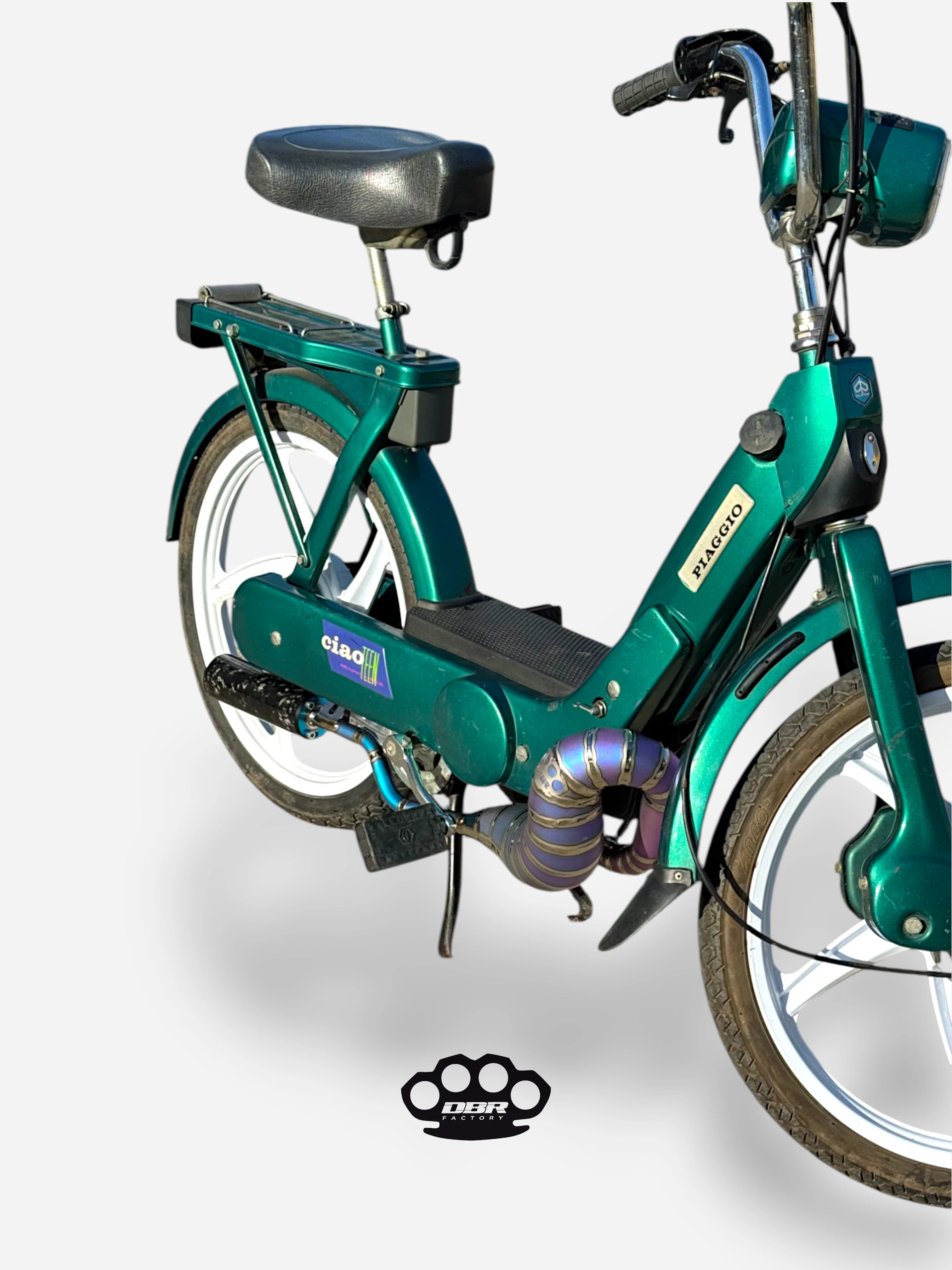 Die Auspuffanlage DBR Wyvern Titanium Multicolor ist darauf ausgelegt, hohe Leistung und ein markantes Design zu bieten, inspiriert von der Mythologie der Wyvern. Dank ihres innovativen Designs optimiert sie den Auspuffgasstrom und verbessert die Motoransprache, ideal für Vespa Ciao und Gilera.