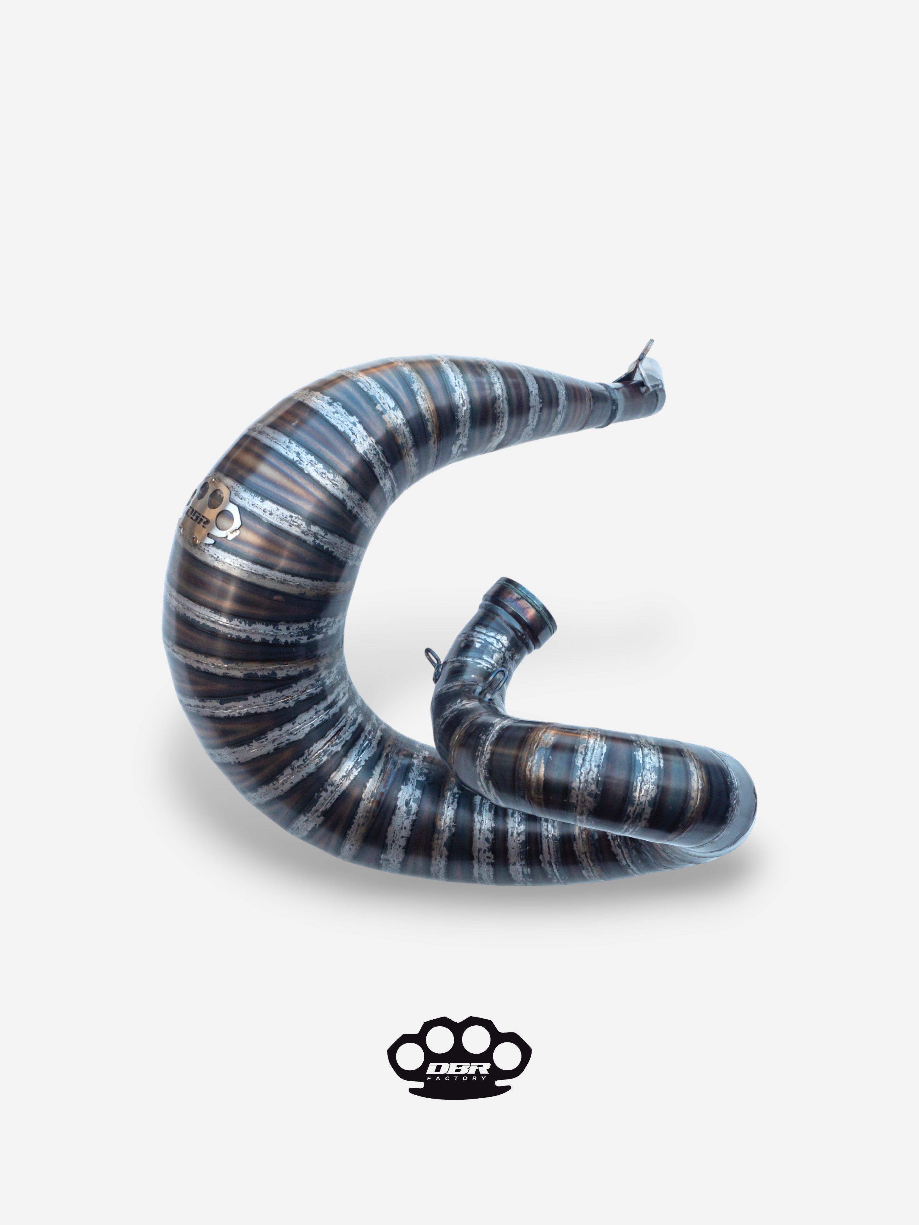 Jedes Teil wird von Hand gehämmert aus hochresonantem P04-Stahl. Diese handwerkliche Technik ermöglicht perfekt angepasste Innenwände, eliminiert die typischen Turbulenzen industrieller Auspuffanlagen und garantiert den "knackigen" und metallischen Sound, den jeder 2-Takt-Fahrer wünscht.